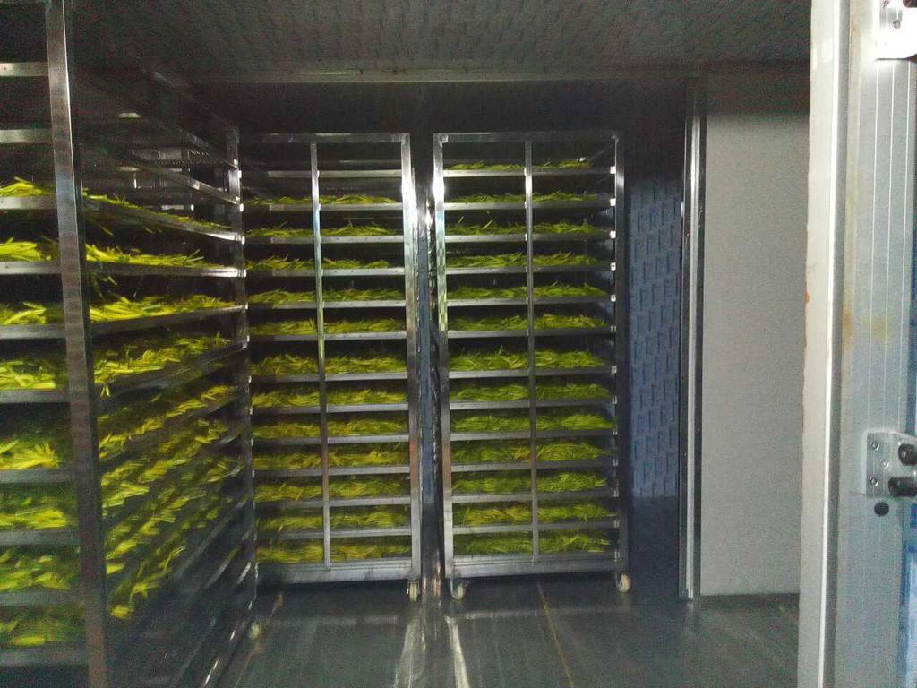 將擺放好黃花菜的物料車推入烘干房內(nèi),設(shè)定好烘干時段,溫度,排濕量,啟動設(shè)備進(jìn)行烘干。